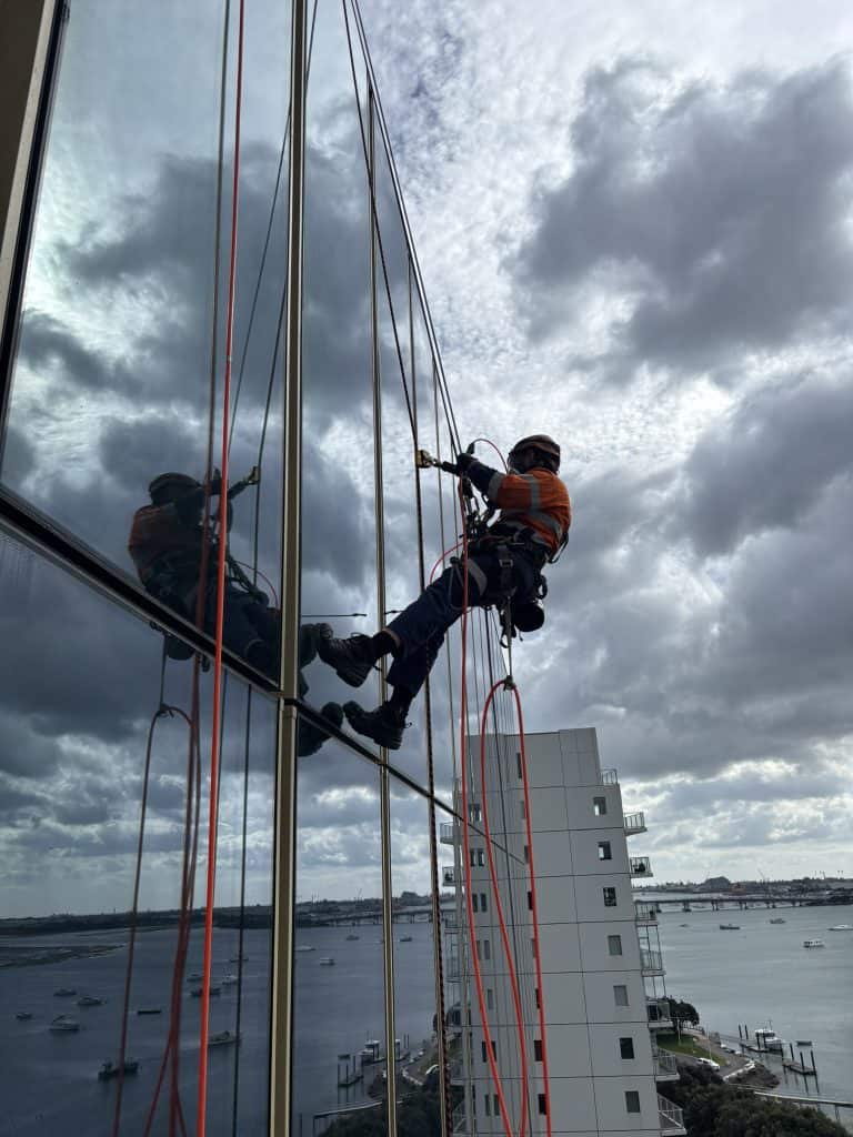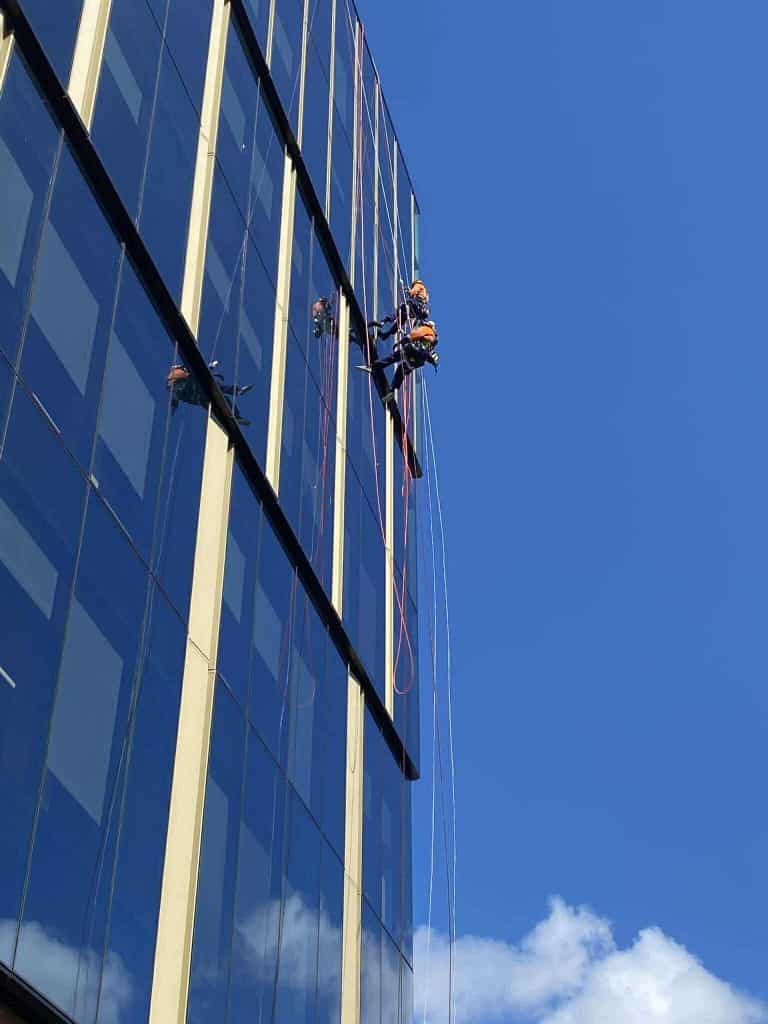 Regular Spider spraying keeps the uniform façade of the building looking clean and well cared for, allowing us to space the cleaning schedule out throughout the year to maximize the appearance of the building, while limiting cost of cleaning.