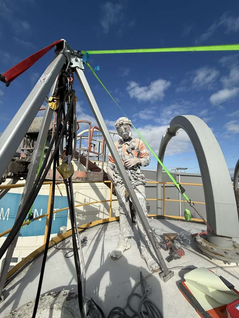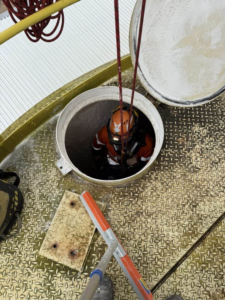 From the inside of Gib waste tanks, to cement silos, flour and grain towers. These photos showcase technical rigging, pre-rigged rescue and the team getting their hands dirty cleaning and inspecting.